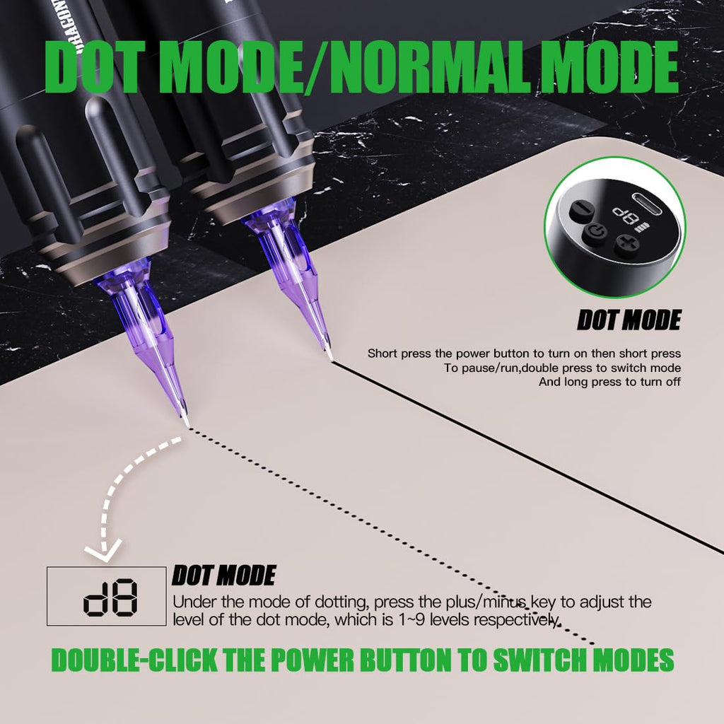 • Beginner Friendly: This machine is compatible with all sizes and brands of standard cartridge needles and is easy to use with no adjustments needed. It simplifies the tattooing process, making it easier to achieve professional results and supporting your growth as a skilled tattoo artist.