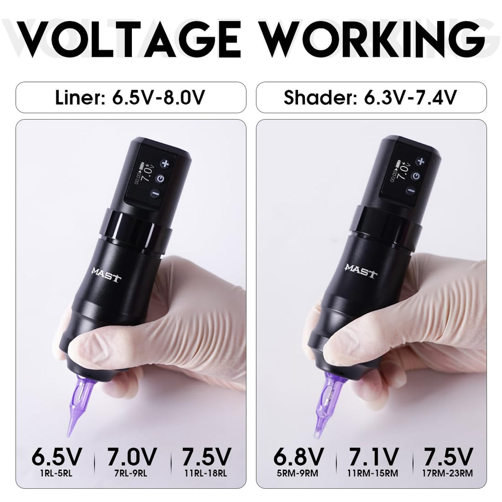 - Widely Applications: The Mast Mini pen is compatible with all sizes of cartridges needles. It has an advanced gear system that operates smoothly, softly, and quietly, leading to ideal healing results. It transfers ink to the skin gently and smoothly, suitable for all skin types.