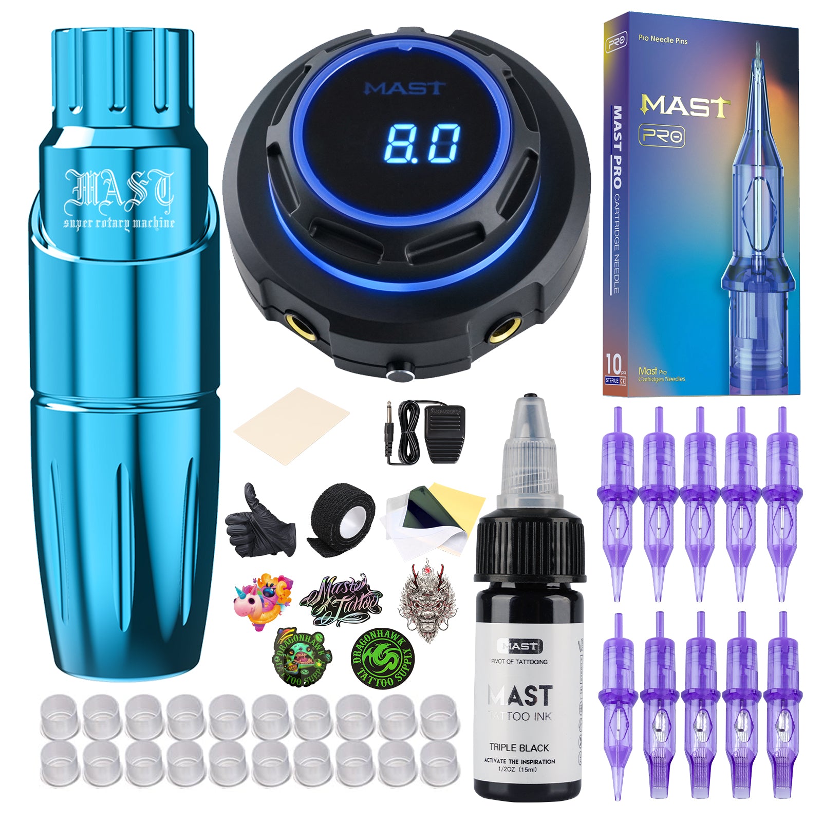 Mast Tour Tattoo Machine Pro Cartridges Kit Halo Power Supply Blue - Fine Tattoo Kit